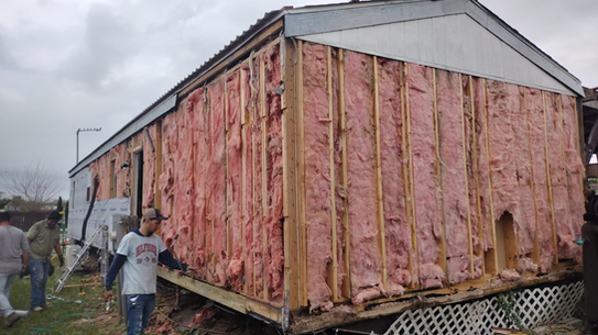 The Sanchez family mobile home was in much need of a renovation. The outside elements, animals, and dirt were getting inside the house due to the old siding. We found out the solution was a full siding replacement and addition of insulation to reduce the high electric bills